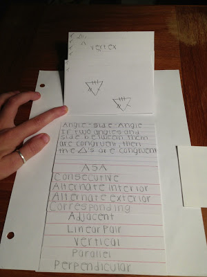 Exploration of concepts precedes formal vocabulary instruction. Once I introduce vocabulary I provide ample practice using and applying definitions to solidify ideas. Students make use of index cards as reference material. We work with paper models, geometry toolkits (compass and straightedge), geogebra and other manipulatives. Students have the opportunity to showcase creativity in both problem solving and artistic projects.